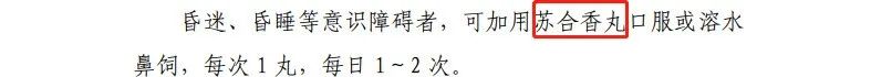 其中,本次《第十版》中更详细的描述了苏合香丸在新型冠状病毒感染中的应用场景,当患者出现昏迷、昏睡等意识障碍时,可加用苏合香丸口服或溶水鼻饲,每次1丸,每日1~2次。
